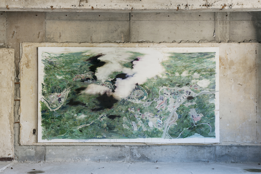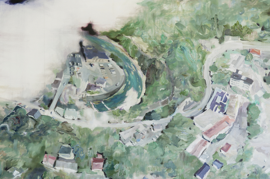 Aerial view of Tsuchiyu, 2013, Oil on canvas, 201 x 382 cm